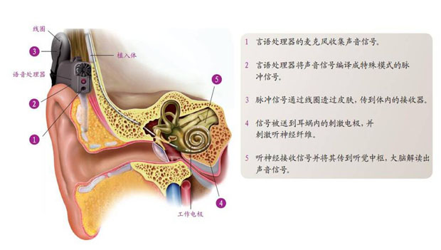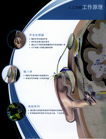 人工耳蝸(Cochlear Implant)是一種電子裝置,由體外言語(yǔ)處理器將聲音轉(zhuǎn)換為一定編碼形式的電信號(hào),通過(guò)植入體內(nèi)的電極系統(tǒng)直接興奮聽(tīng)神經(jīng)來(lái)恢復(fù)或重建聾人的聽(tīng)覺(jué)功能。近年來(lái),隨著電子技術(shù)、計(jì)算機(jī)技術(shù)、語(yǔ)音學(xué)、電生理學(xué)、材料學(xué)、耳顯微外科學(xué)的發(fā)展,人工耳蝸已經(jīng)從實(shí)驗(yàn)研究進(jìn)入臨床應(yīng)用?,F(xiàn)在全世界已把人工耳蝸?zhàn)鳛橹委熤囟让@至全聾的常規(guī)方法。
