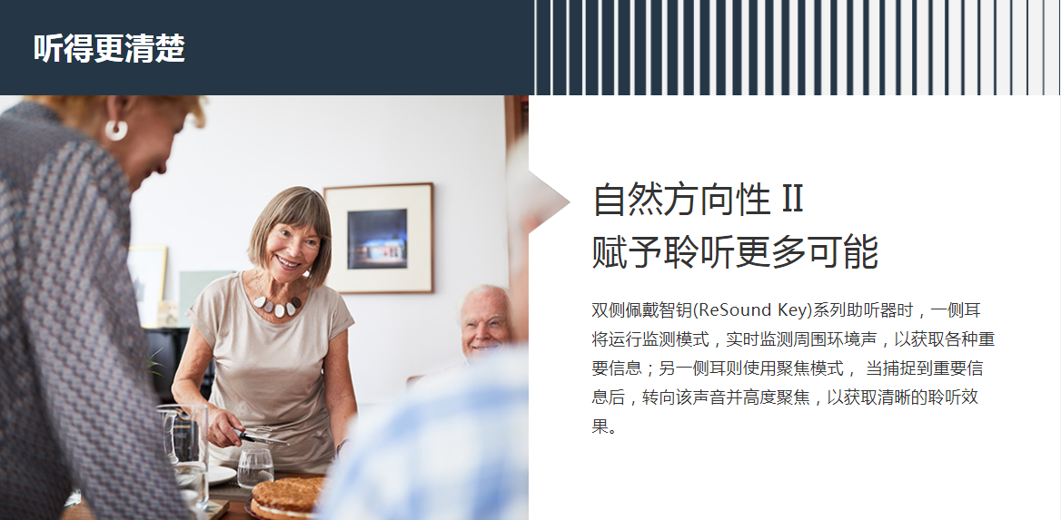 雙耳聆聽,能進(jìn)一步幫助您在復(fù)雜環(huán)境中,以較少精力融入多變的環(huán)境,獲取更真實(shí)清晰的聲音。